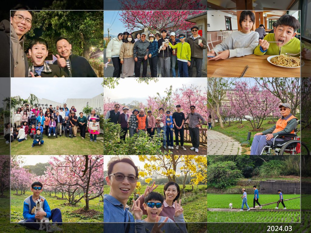 月是花季,也是回憶特別深刻的月份。全家陪著爸爸在家附近散步,遇見滿開的櫻花,留下難得的大合照。那時候的喬治還小小一隻,模樣特別可愛。這個月還帶著爸媽到聯大湖畔,迎著湖邊盛放的櫻花,全家人一起走走拍拍,每一張照片如今都成為思念的印記。